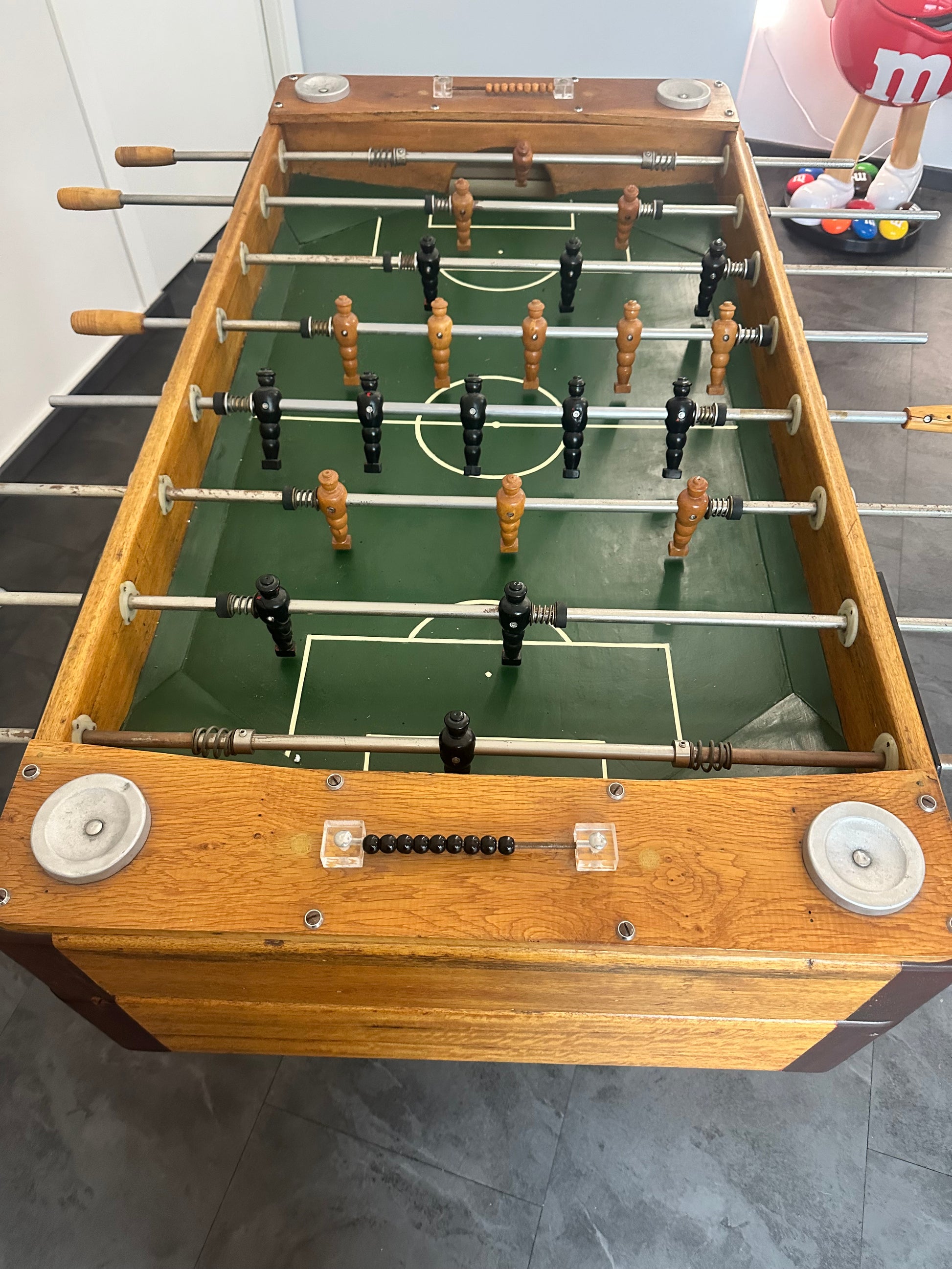 Descrizione: Calcetto Balilla anni 30 in legno massello. Effettuato restauro conservativo Giocatori in legno, palline in sughero.