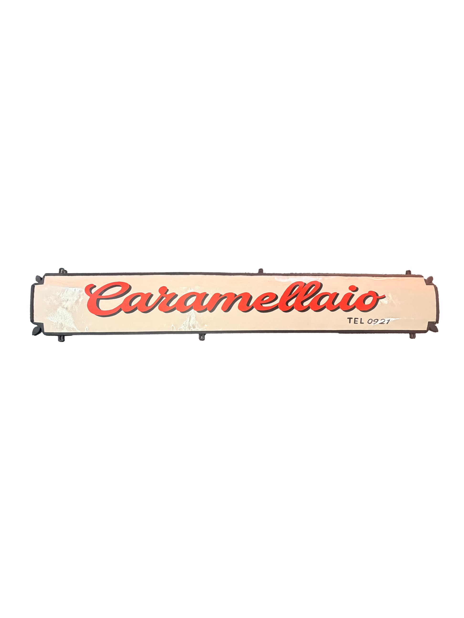 Descrizione: Insegna Caramellaio bombata in metallo anni 30. Totalmente restaurata come in origine.