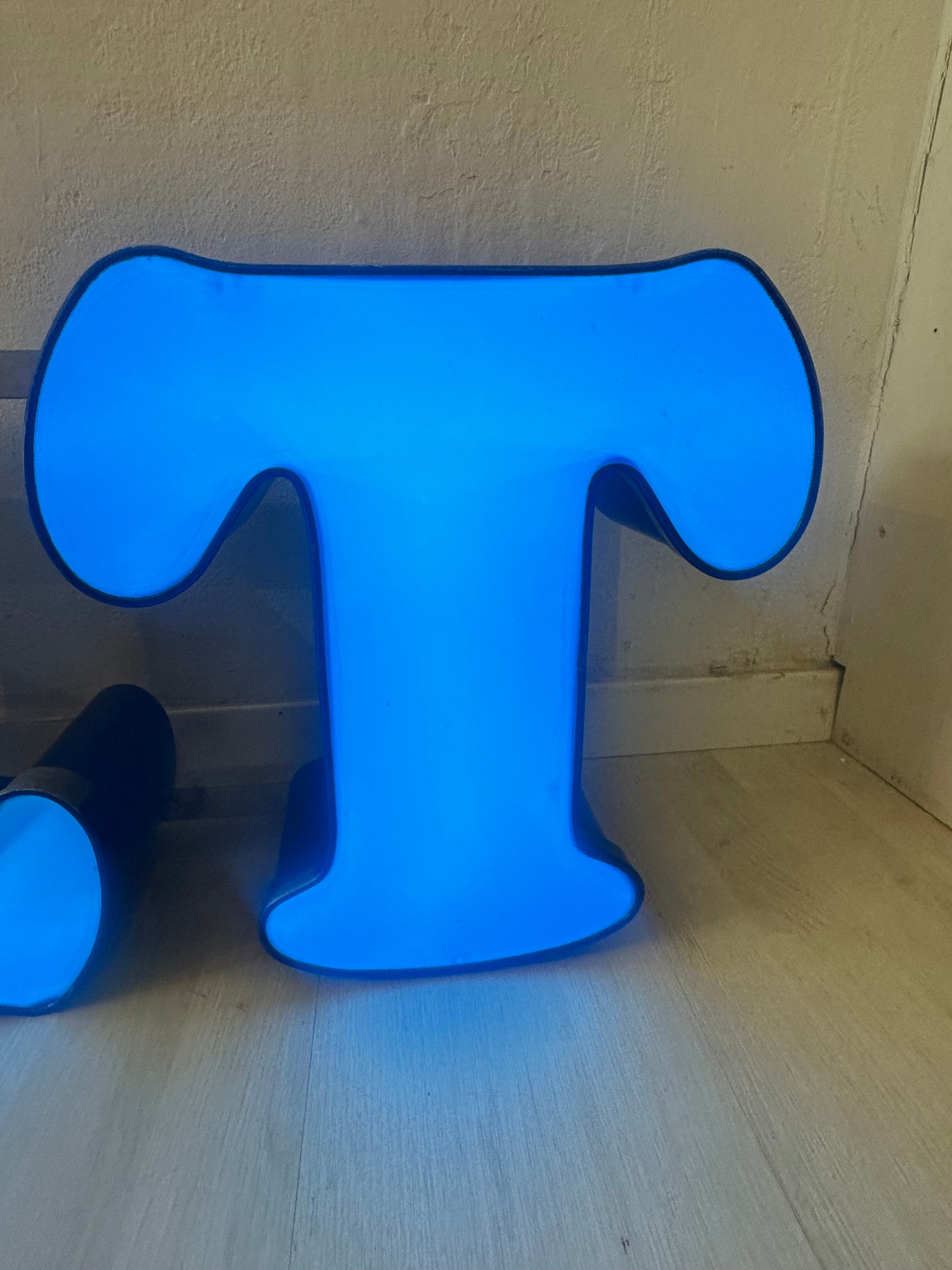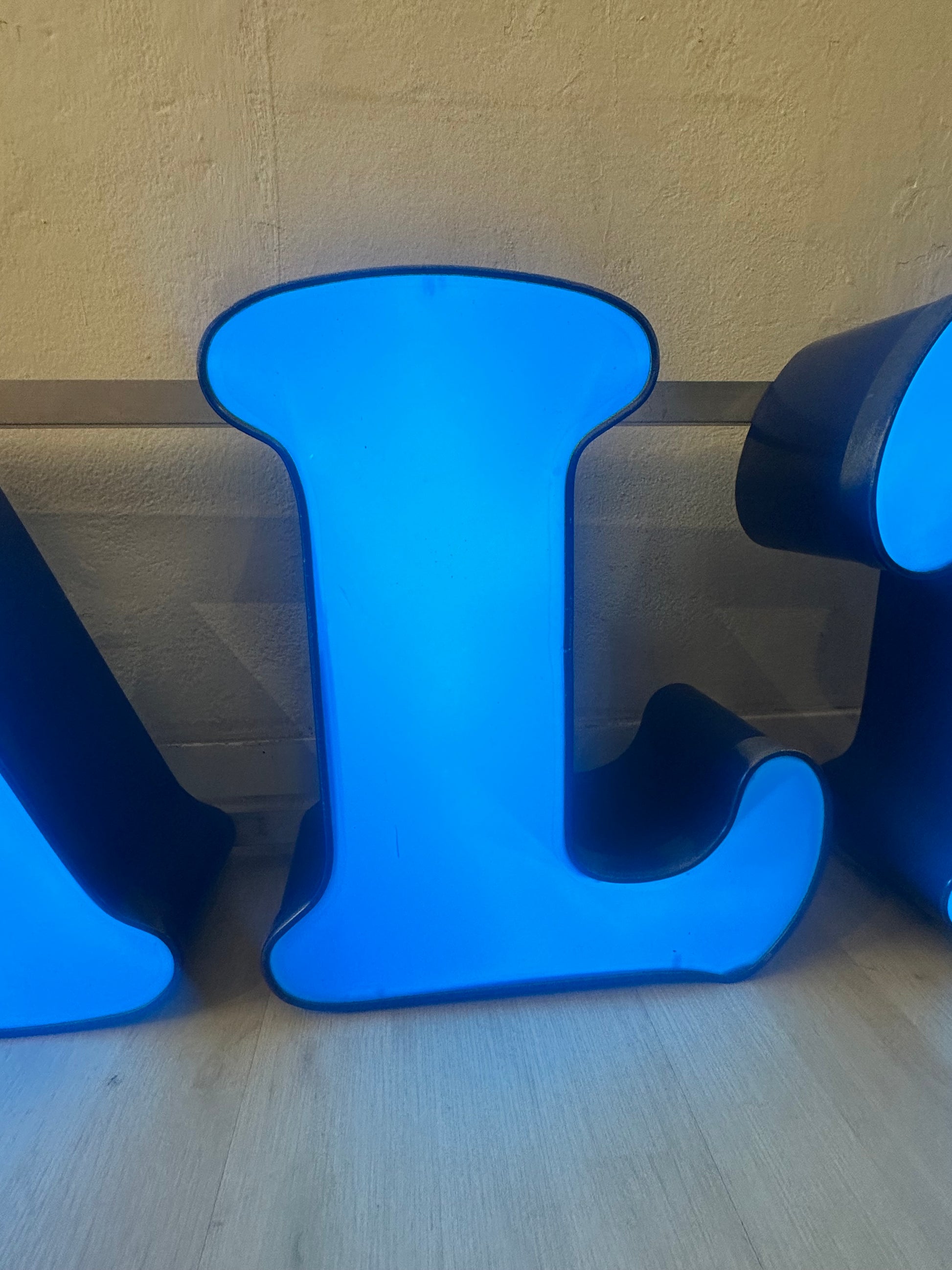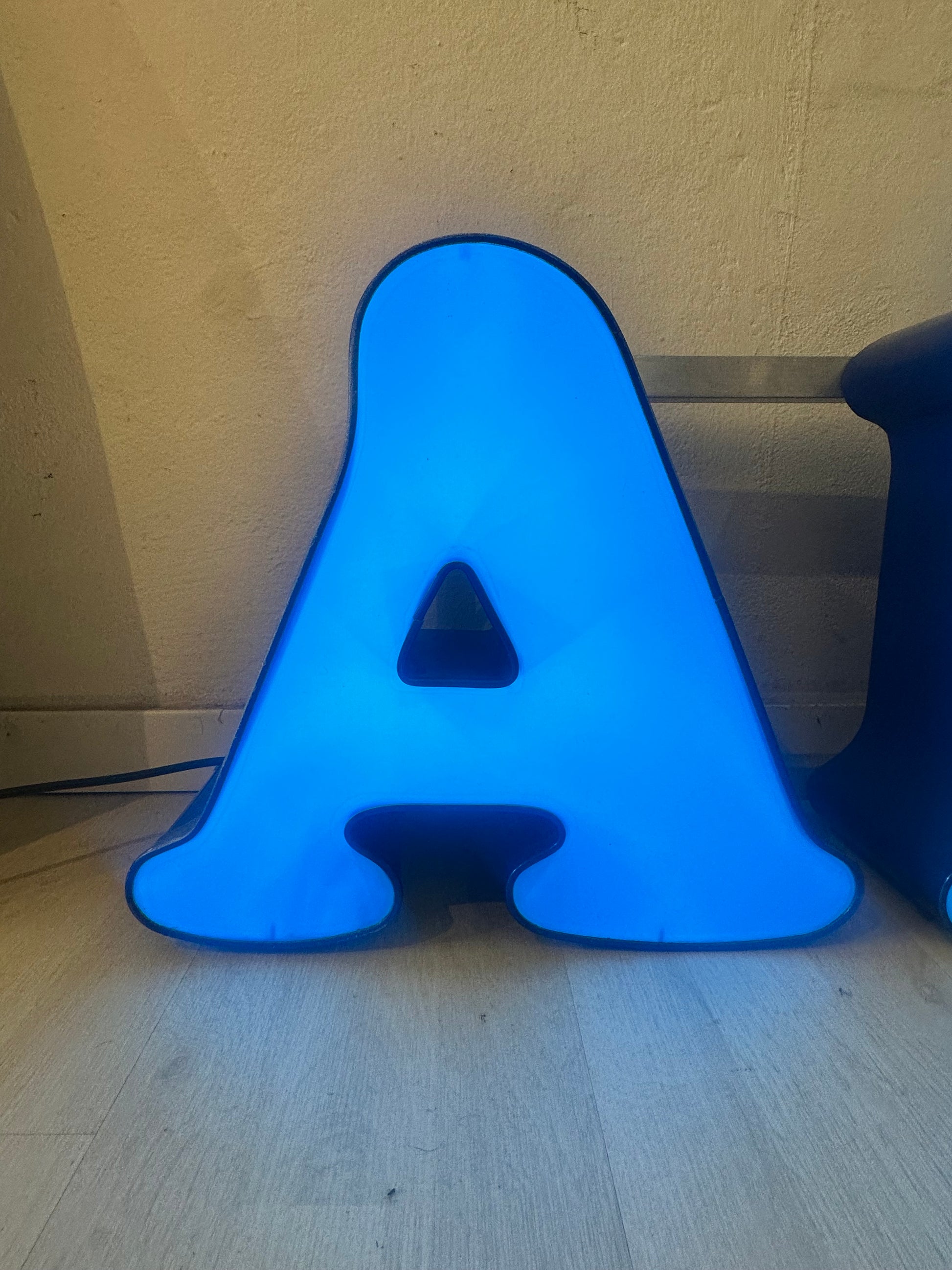 Descrizione : insegna luminosa anni 80 con casonetto in metallo, fronte in plexiglass e illuminazione neon led