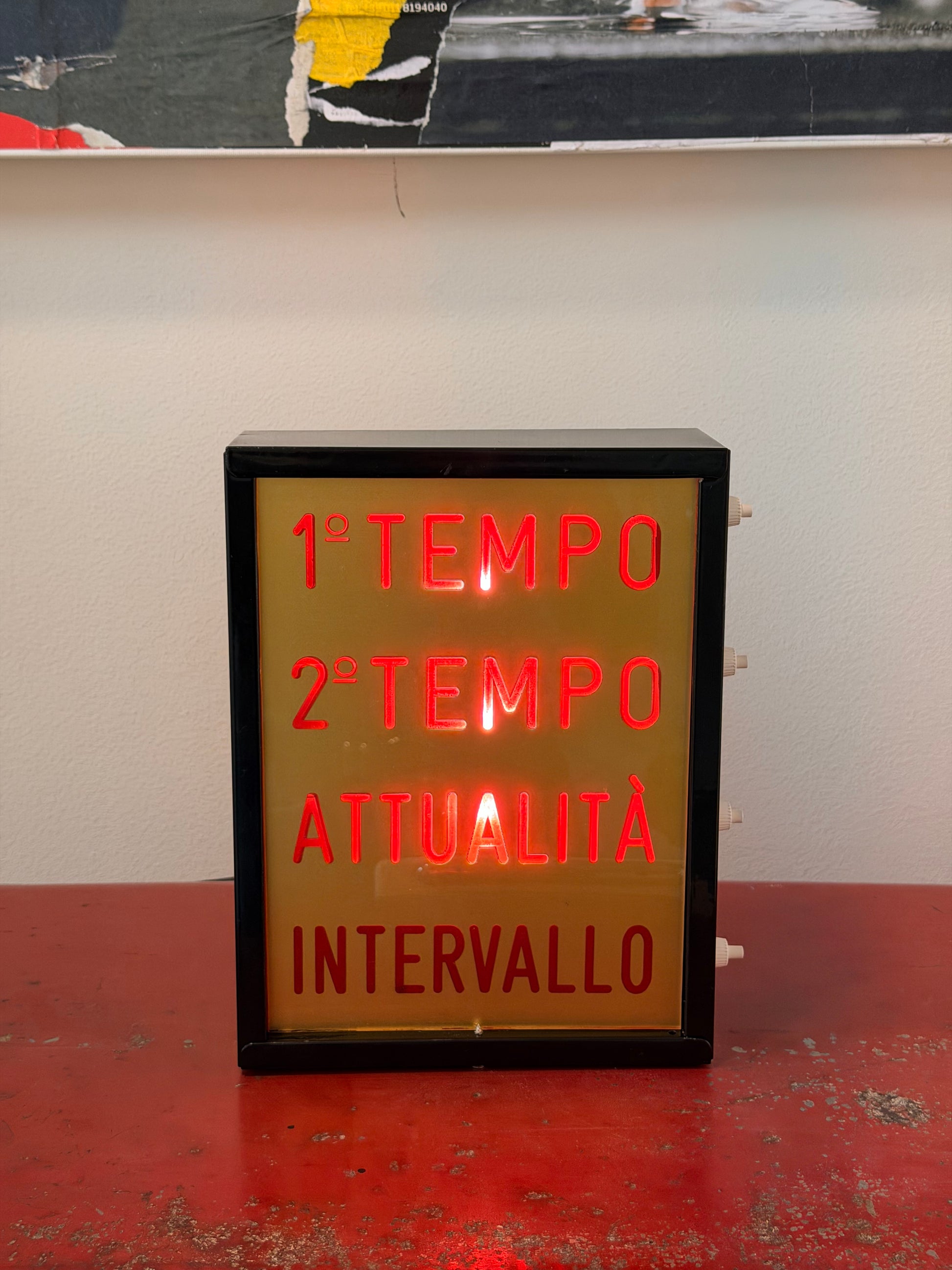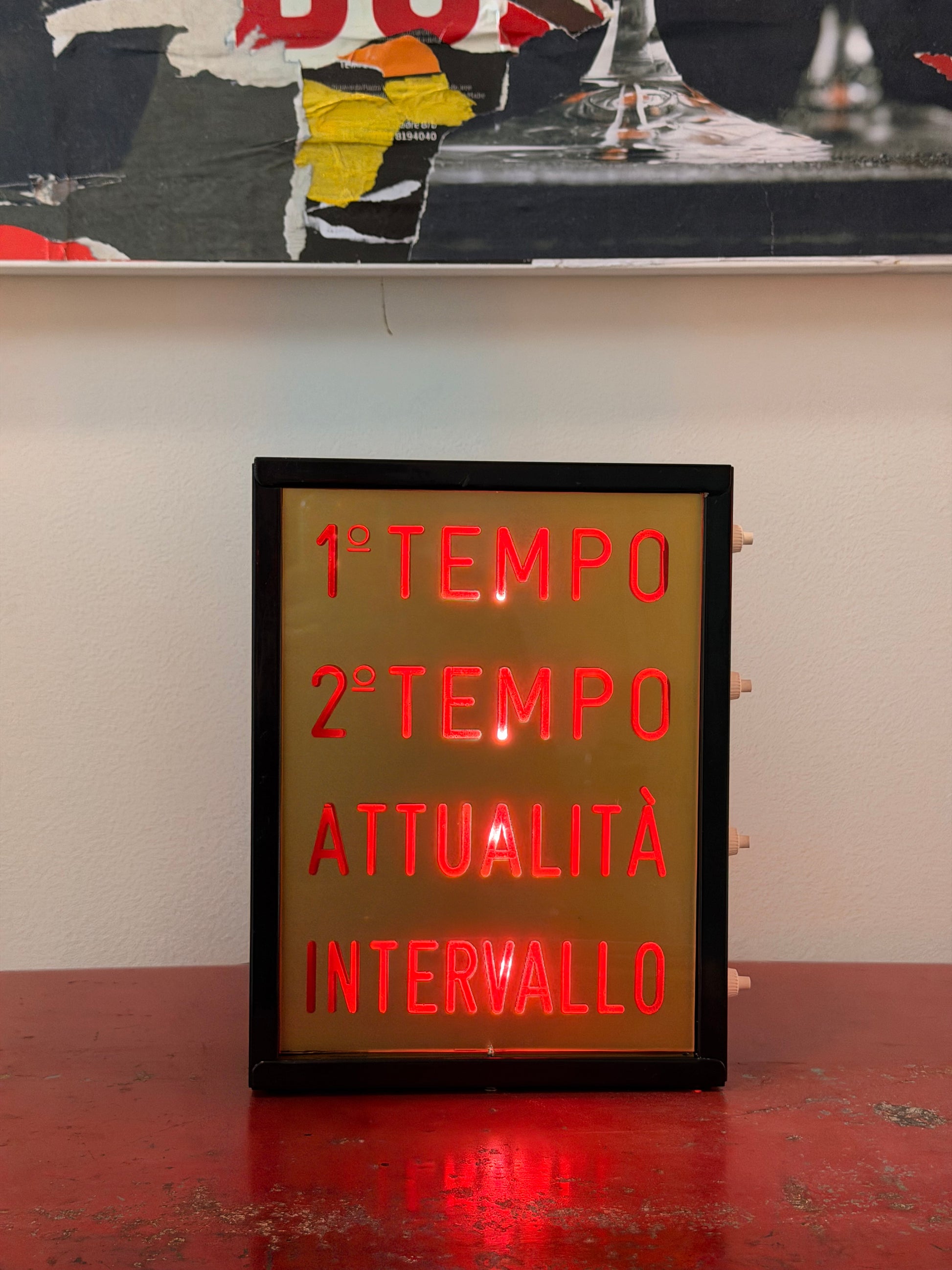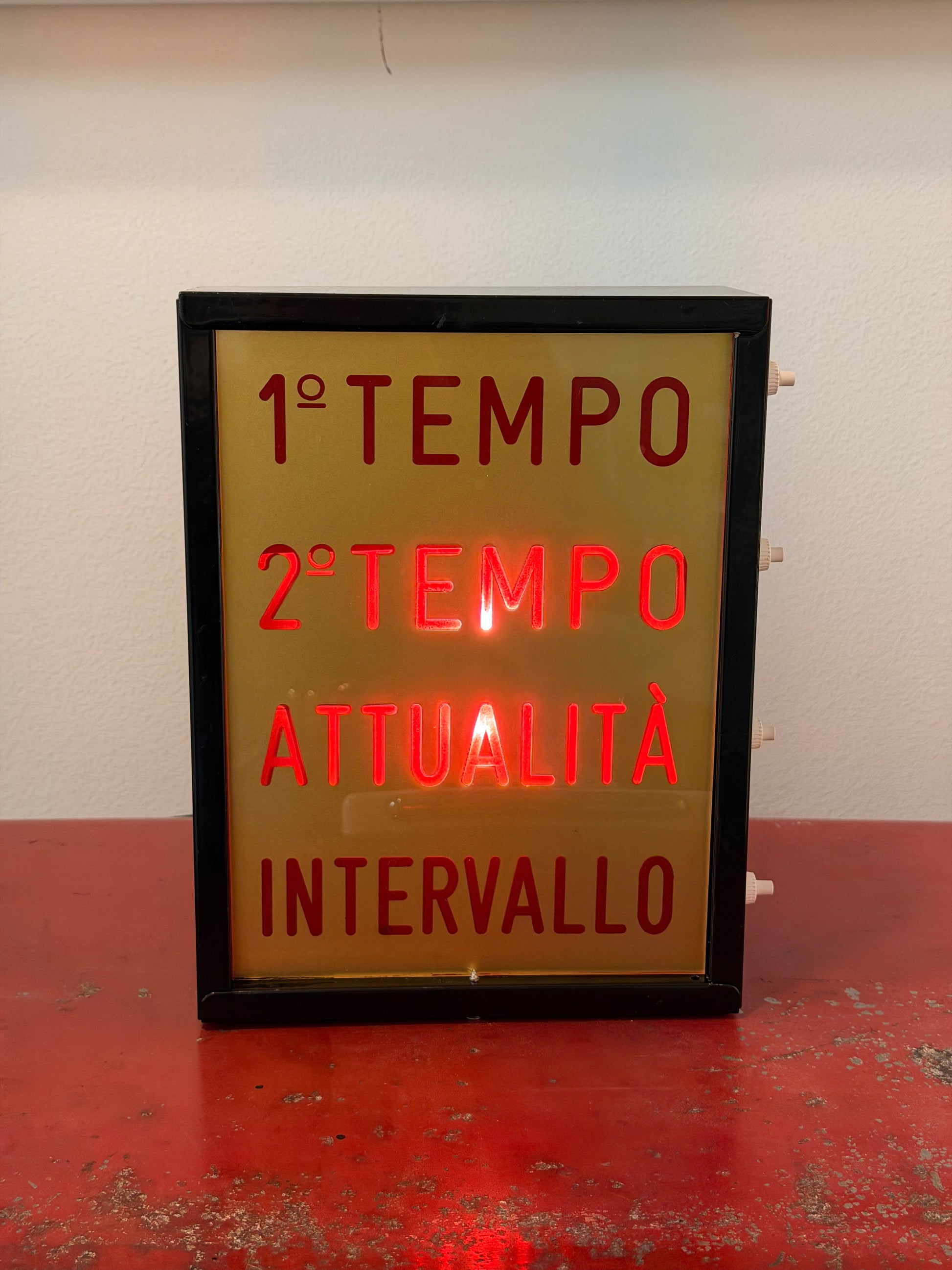 Condizioni: Buone, come da foto. Insegna luminosa originale da banco o parete. Accensione a intervallo mediante interruttore presenti sul lato
