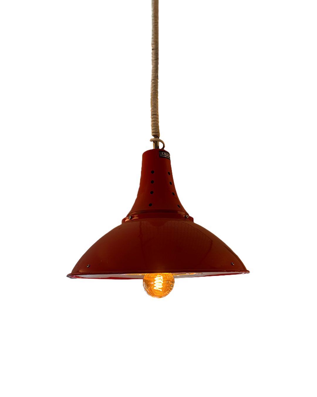 Descrizione : Forma a campana in metallo smaltato o verniciato (qui colorati verde, arancione, rosso, giallo).