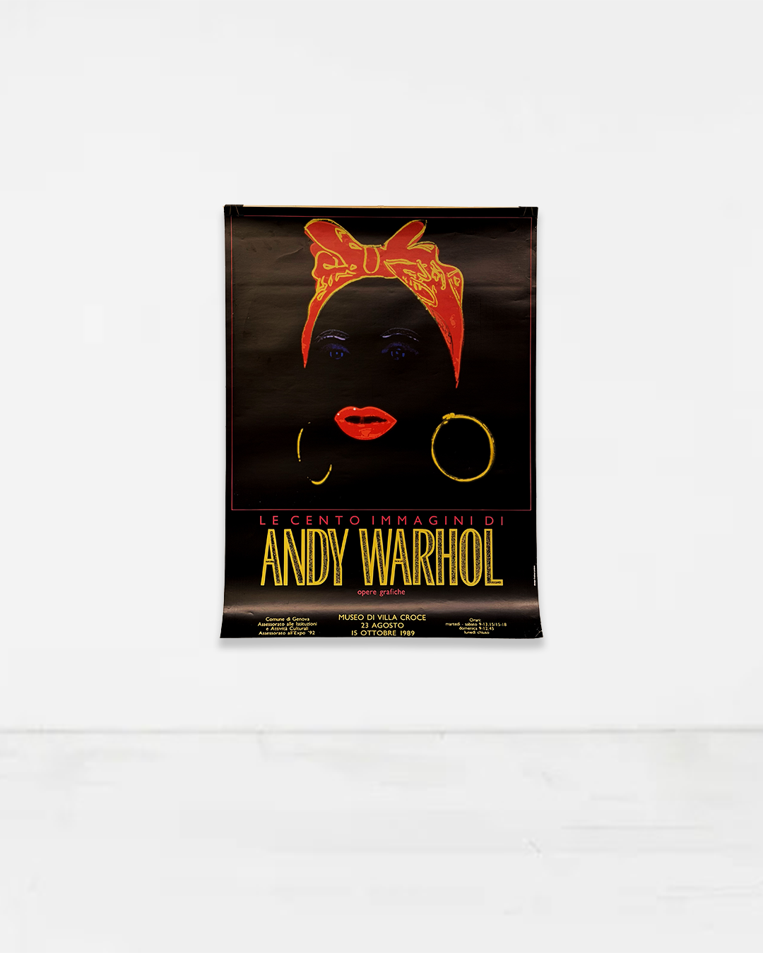 Descrizione : Manifesto pubblicitario Andy Warhol per la mostra "le cento immagini di Andy Warhol" nel 1989